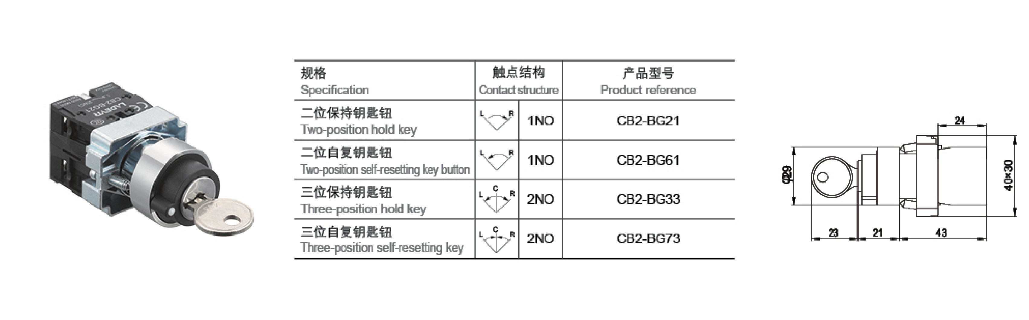 This series of products, the button head and the middle seat are connected by multi-point clamping, in-line fixed installation, impact resistance, drop resistance, vibration resistance, suitable for use in various harsh environments.It is composed of button head, middle seat and contact seat.   It adopts advanced selflocking connection without fasteners, which is safe and reliable.   It is efficient and quick to disassemble and assemble.   It can be directly installed on the middle 22mm installation panel without adding any accessories.   The installation wrench is more sturdy and reliable.High-quality engineering flame-retardant materials are used, with good insulation performance and reliable contact.Products comply with IEC60947-5-1, GB/T14048.5 and other standards.The contact element is a flat-pressed slow-action structure;   it can meet the requirements of a variety of specific control circuits.Mounting Aperture: φ22mmFunction: self-reset button, self-locking button, illuminated button, knob, key button, emergency stop button, mushroom head button, double-position button, etc