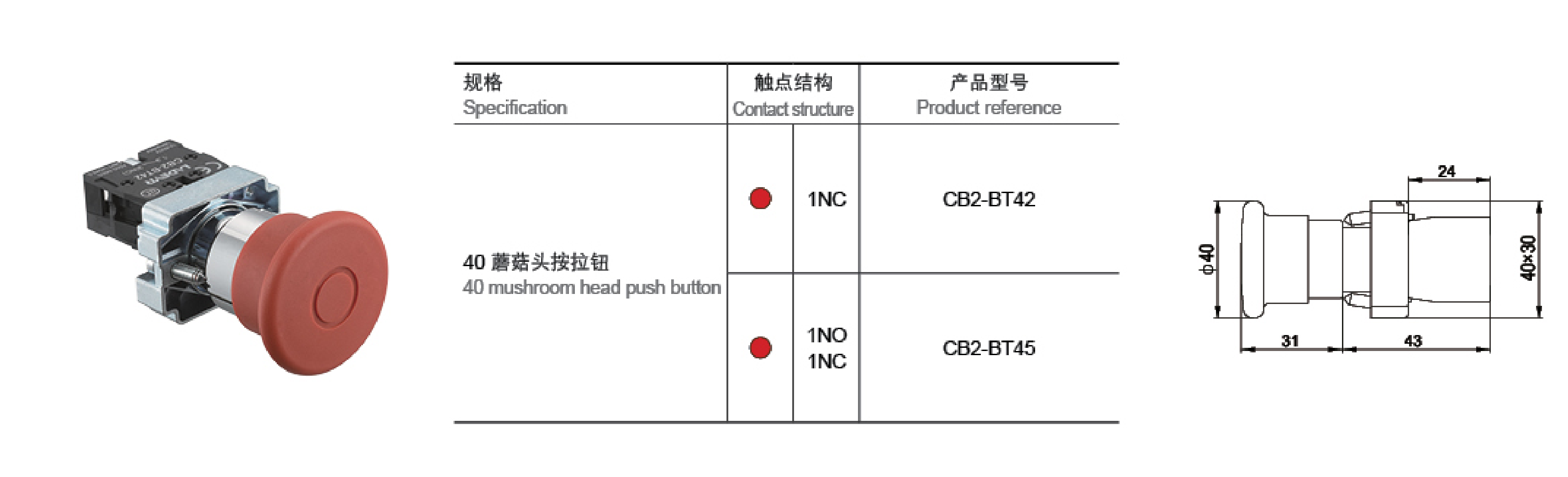 This series of products, the button head and the middle seat are connected by multi-point clamping, in-line fixed installation, impact resistance, drop resistance, vibration resistance, suitable for use in various harsh environments.It is composed of button head, middle seat and contact seat.   It adopts advanced selflocking connection without fasteners, which is safe and reliable.   It is efficient and quick to disassemble and assemble.   It can be directly installed on the middle 22mm installation panel without adding any accessories.   The installation wrench is more sturdy and reliable.High-quality engineering flame-retardant materials are used, with good insulation performance and reliable contact.Products comply with IEC60947-5-1, GB/T14048.5 and other standards.The contact element is a flat-pressed slow-action structure;   it can meet the requirements of a variety of specific control circuits.Mounting Aperture: φ22mmFunction: self-reset button, self-locking button, illuminated button, knob, key button, emergency stop button, mushroom head button, double-position button, etc