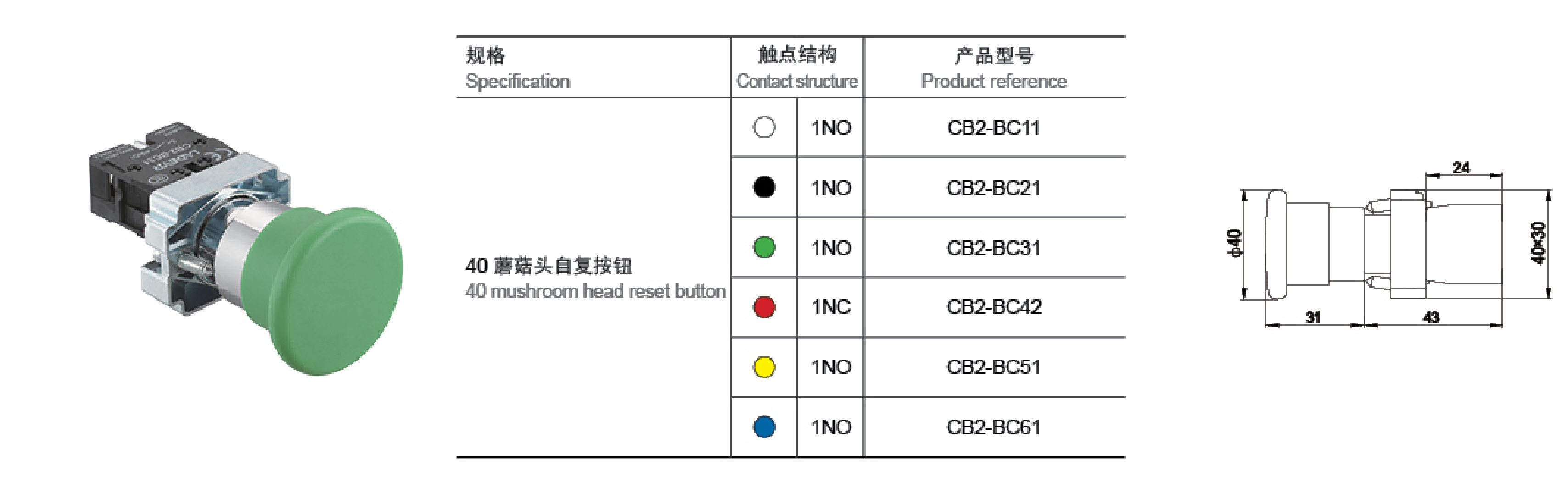 该系列的产品,按钮头部与中座连接采用了多点卡位,直插式固定安装方式,抗冲击、抗跌落、抗振动,适合在各种恶劣环境中使用。由按钮头部、中座、触点座部分组成,采用先进的无紧固件自锁联接,安全可靠,拆装高效快捷,无需增加任何附件即可直接安装在022mm的安装面板上,使用安装板手使安装更加坚固可靠。采用优质工程阻燃材料,绝缘性能好,接触可靠;产品符合IEC60947-5-1,GB/T14048.5等标准。触点元件是平压式的慢动结构,能达到多种特定控制电路的要求。安装孔径: φ22mm功能:自复按钮、自锁按钮、带灯按钮、旋钮、钥匙钮、急停钮、蘑菇头按钮、双位按钮等。